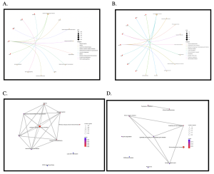 Then SRPlot bioinformatics tool and database was utilized to analyze the functions of these top genes to find statistically significant genes and pathways for both diseases. SR Plot is an online bioinformatics tool used to produce graphs and visuals showing GO and KEGG pathway analysis for any list of genes. (8). KEGG (Kyoto Encyclopedia of Genes and Genomes) analysis is defined as analysis of complex gene functions (9) while GO (Gene Ontology) analysis is an analysis of biological processes, cellular components, and molecular functions (10). Graphs produced showing GO analysis included a bar graph showing the enrichment score of the three different gene ontologies and a dot plot showing significant pathways based on p-value. Graphs produced showing KEGG analysis included a CNET plot showing genes and their associated pathways and an EMAPplot also showing significant pathways. Figure 1 presents an overview of the methods, procedures, and bioinformatics tools and databases applied throughout this study.