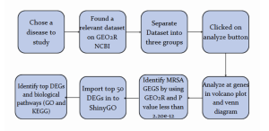 To conduct this study, several bioinformatics tools and databases were used. First, the National Center for Biotechnology Information (NCBI), Gene Expression Omnibus (GEO) was used to collect data on MRSA and identify the most important or top significant genes that are differentially expressed in MRSA. NCBI is a division of the National Library of Medicine (6). Gene Expression Omnibus (GEO) repository is a bioinformatics tool that archives and freely distributes gene expression experiment results conducted from the microarray method. Data in GEO represent original research deposited by the scientific community, often in compliance with grant or journal directives that require data to be made publicly available in a MIAME-supportive database (6).